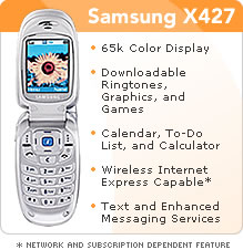 A Cingular exclusive, the Samsung X427 is packed with great features. And for a limited time, it's free after mail-in rebate.
